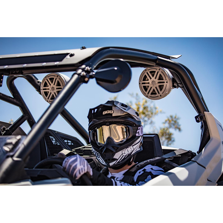 Ideal for powersports, marine and off-road vehicle applications, these enclosed speaker systems include our high-performance, M3 6.5-inch marine coaxial speakers with silk dome tweeters housed in rugged, injection-molded enclosures to deliver clean, loud audio.