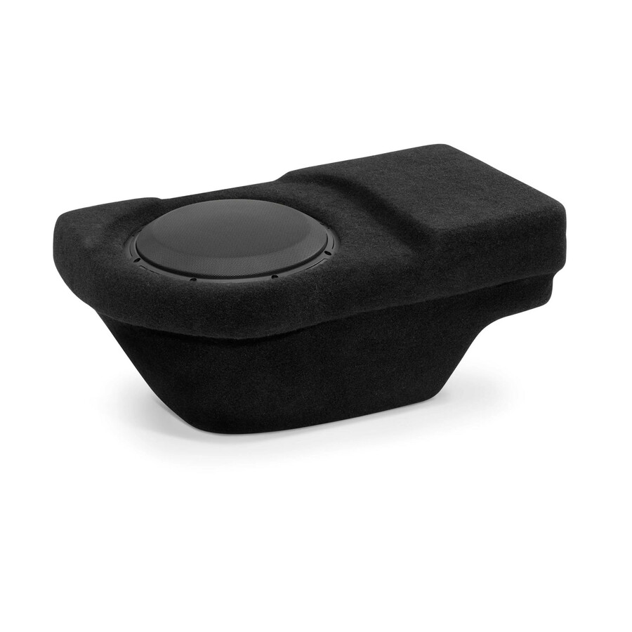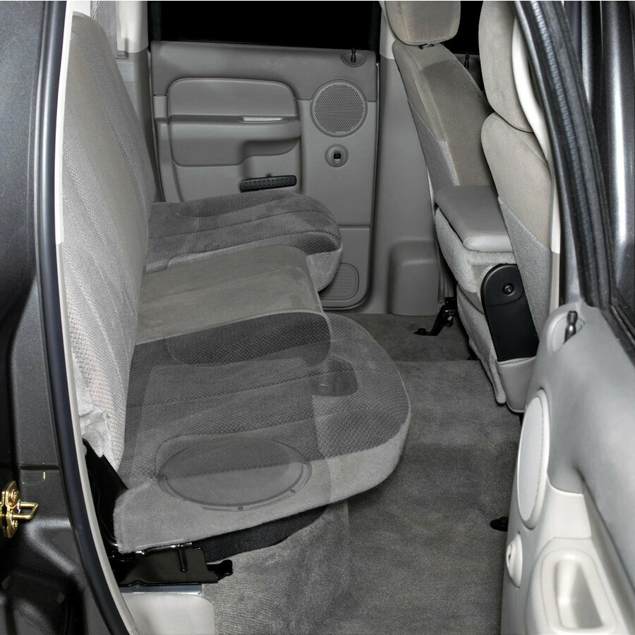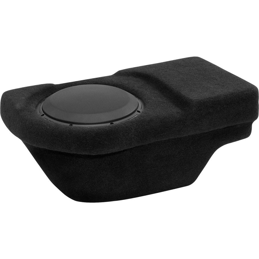 Our Stealthbox® for the Quad Cab tucks under the rear seat on the passenger side and encloses a 10-inch driver for impressive sub-bass performance. Seat folding is unaffected and plenty of room is left on the driver side for amplifier installation or storage. Best of all, the Stealthbox® is essentially invisible once installed.