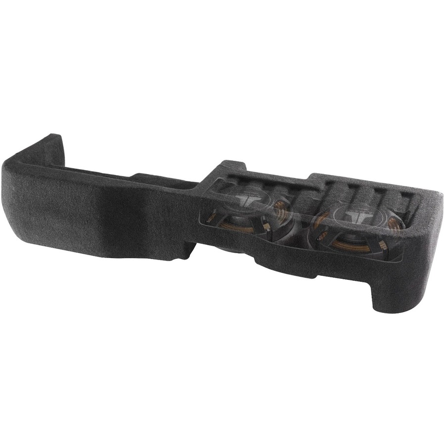 The Stealthbox® slips under the truck's rear seat and features two of our revolutionary 12TW3 thin-line subwoofers, giving you absolutely stellar sub-bass impact and quality. We even left a perfect spot in the middle of the enclosure for a clean, hidden amplifier installation!