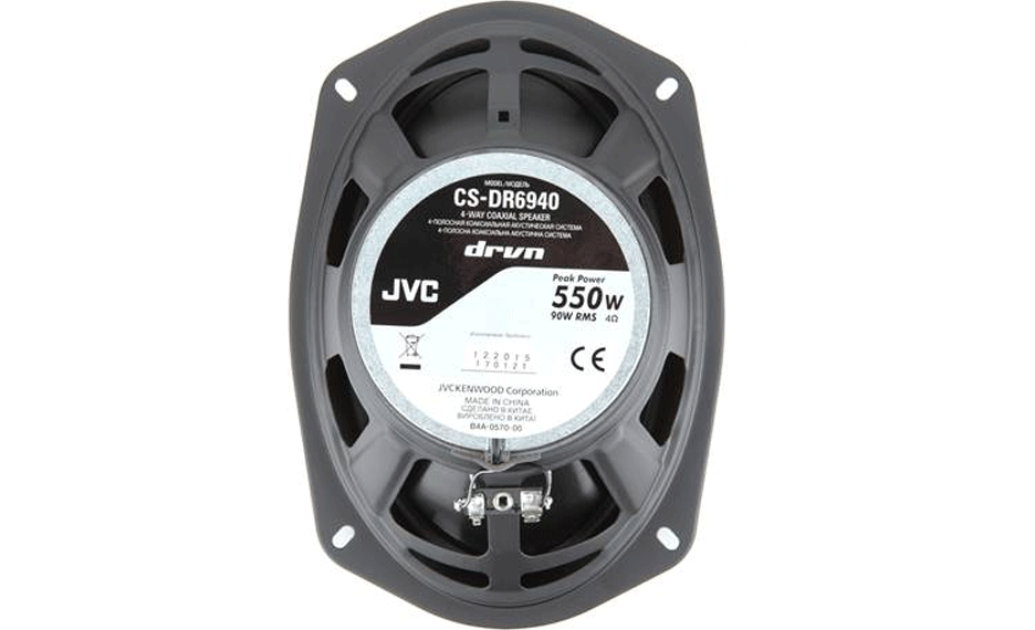 JVC's CS-DR6940 6"x9" 4-way speakers deliver a powerful, affordable upgrade with crisp highs and punchy lows. Built tough for the car environment, these speakers use a carbon mica woofer and PEI tweeters to bring your music to life—perfect for replacing worn or underwhelming factory speakers.