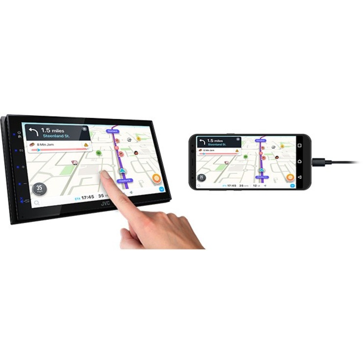 Seamlessly display your Android phone on the JVC screen via USB. Touch control is supported from both screen and smartphone.