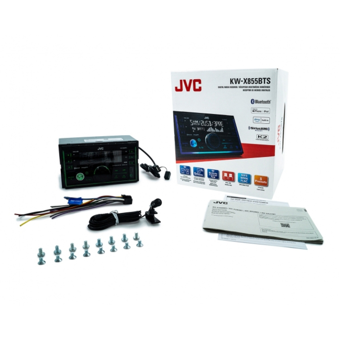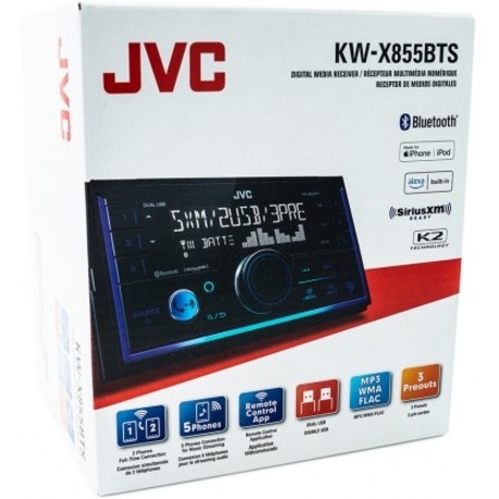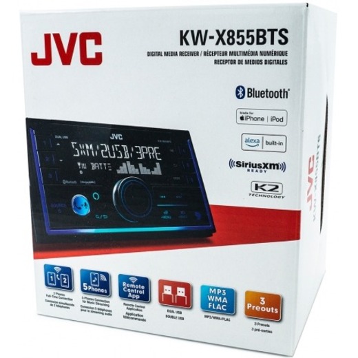 JVC KW-X855BTS Car Flash Audio Player - 88 rated power RMS - iPod/iPhone Compatible - Double DIN - 4 Channel - LCD Display - MP3, WMA, WAV, FLAC, AAC - FM, AM - 6 x AM, 18 x FM - Bluetooth - USB - Auxiliary Input