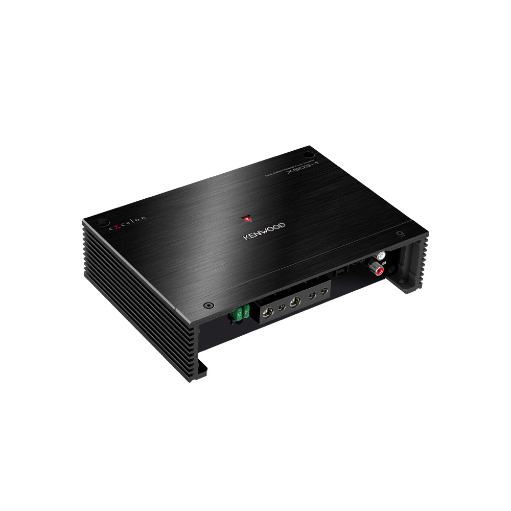Kenwood X503-1 Class D Mono Power Amplifier delivers 300W RMS at 4Ω (500W RMS at 2Ω) with a max power of 1000W. Features include a variable low-pass filter, bass boost, infrasonic filter, and a wired remote for easy control.