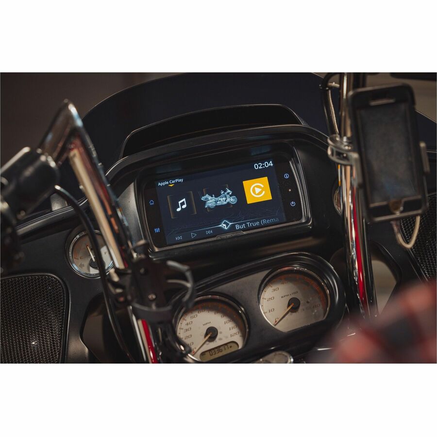 Complete Control:Control however you want it. This source unit keeps all factory handlebar controls as well as CB and wireless headset connectivity, without additional parts, and with built in Apple Car Play®, controlling your playlists and apps has never been easier.