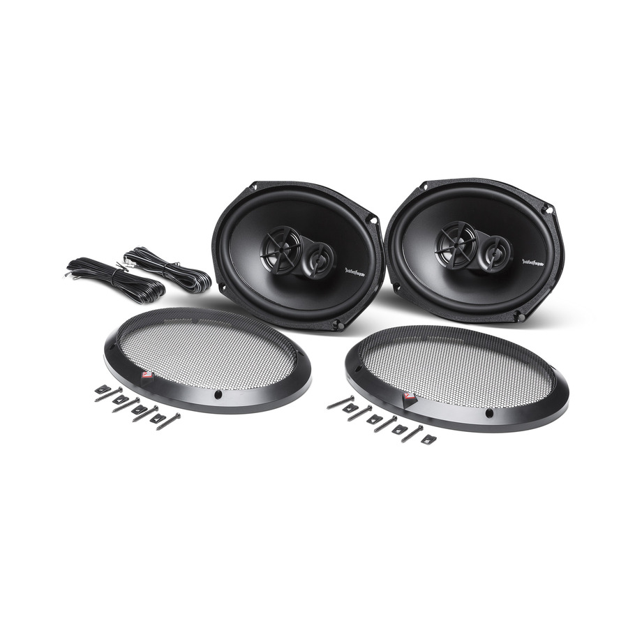 The 6"x9" Prime full-range speakers offer Rockford Fosgate sound quality at a fantastic value. Perfect for replacing factory speakers, they feature polypropylene cones and a silk dome pole mounted Piezo tweeter and midrange. Includes grilles so they look as good as they sound.