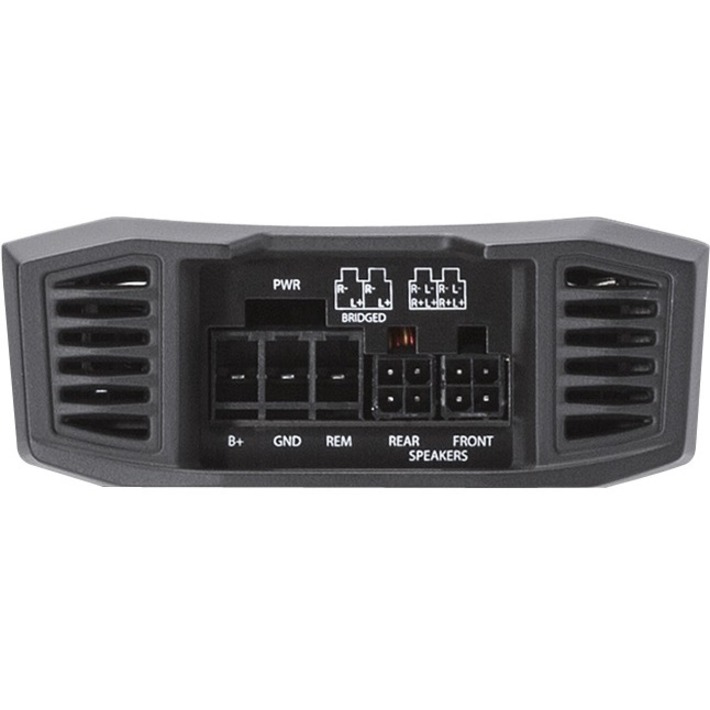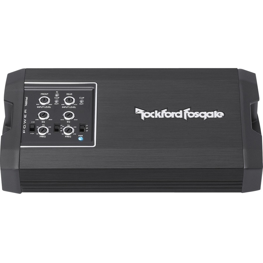 The Power T400X4ad 400 rated power 4-channel ultra-compact, amplifier is built on Rockford Fosgate's proprietary Class-AD technology, featuring Constant Power to produce the same output at both 4-Ohm and 2-Ohm impedances. Flexible vehicle integration enabled through low-level and high-level inputs with auto turn-on. Top mounted controls allow easy access to built-in crossover and C.L.E.A.N. input/output clip detection circuits. The 3-stage thermal lock extrusion with dual fan forced induction keeps everything cool while real-time thermal/protection schemes safeguard the amplifier.