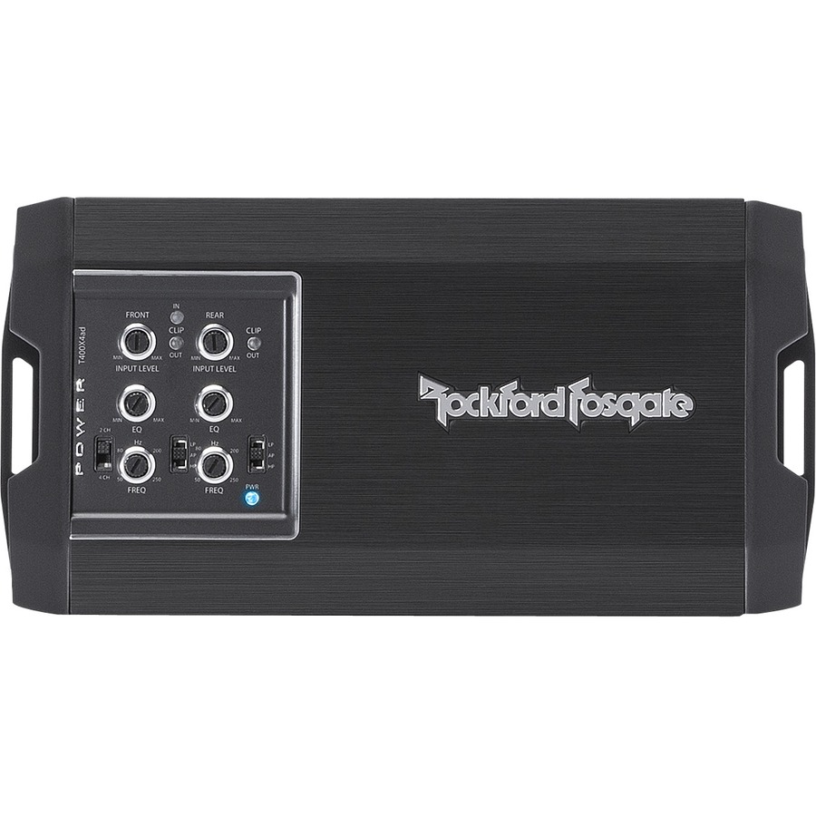Rockford Fosgate Power T400X4AD Car Amplifier - 200 rated power RMS - 400 rated power PMPO - 4 Channel - Class AD - Bridgeable - 4 Ohm - 20 Hz to 20 kHz - 4 x 100 rated power @ 4 Ohm - 4 x 100 rated power @ 2 Ohm - 2 x 100 rated power Bridged Power @ 4 Ohm