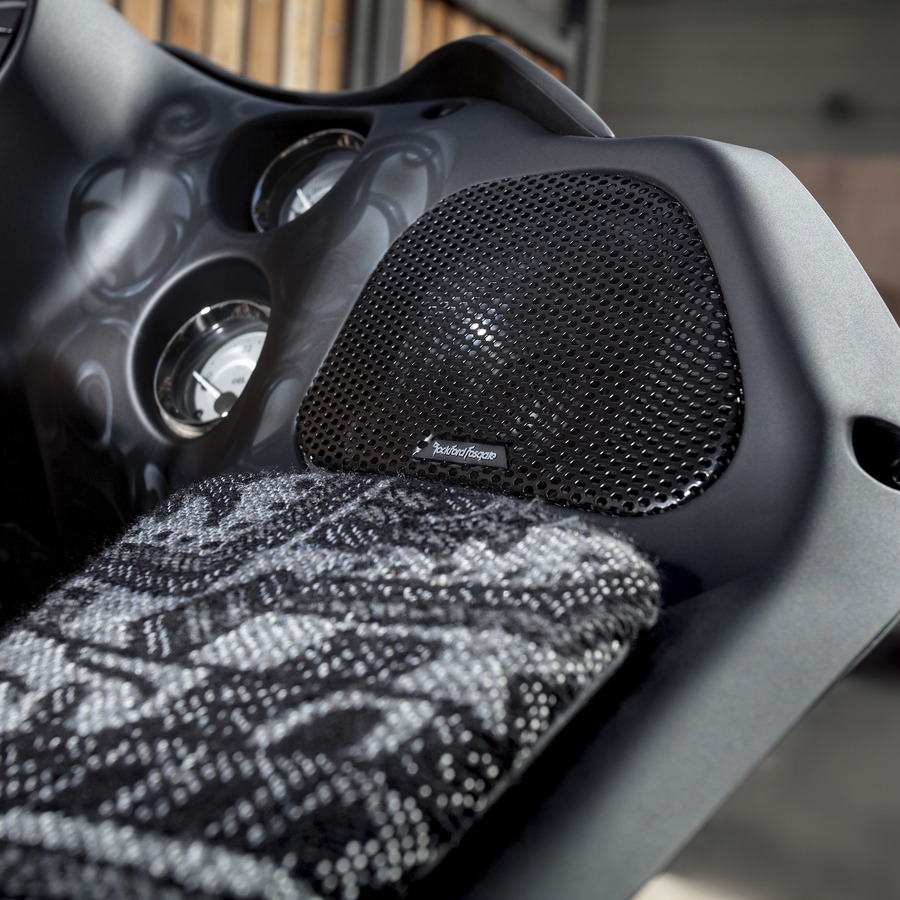It is made water/weather resistant with the addition of a Santoprene front isolation spider connecting between the tweeter housing and cone assembly. The speaker requires no modification of the factory location and comes with new grille assemblies.